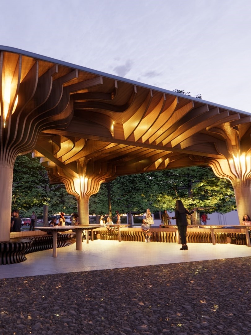Design proposal for a pavilion in Waterloo Park, created during my 1B term of Architectural Engineering at the University of Waterloo.